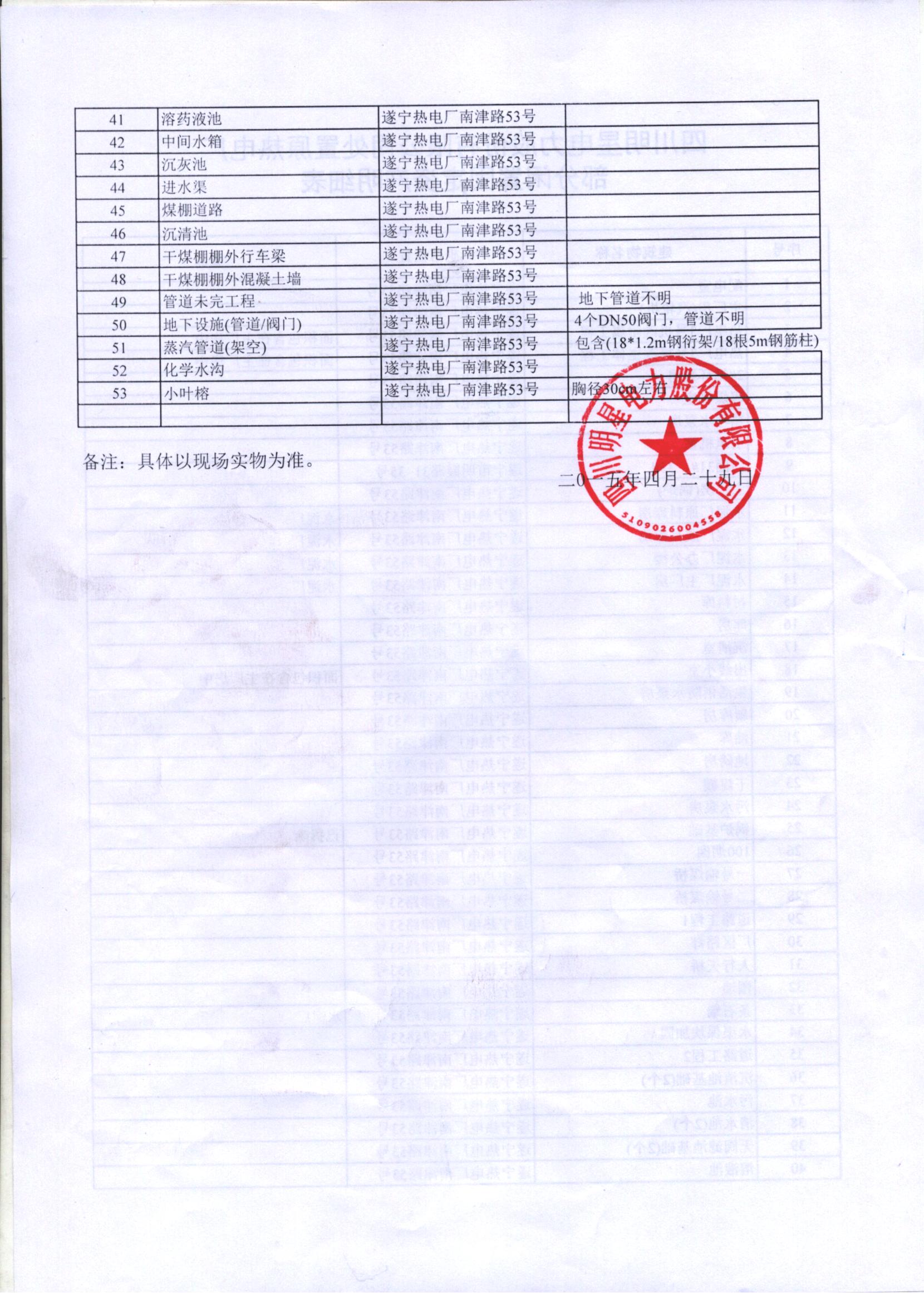 遂寧熱電廠附屬設備拍賣會公告