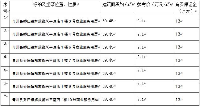 特別聲明:1.標的物按實物現狀拍賣。2.公告中的面積僅供參考,面積多少不影響其成交價。3.從委托人到買受人的權屬變更登記過戶的稅費由委托人和買受人按國家規定各自承擔應繳部分。4.上述拍賣標的的當事人、權利人或其他優先購買權人,自本公告發布之日起視為拍賣通知送達,缺席將喪失相關權利;優先購買權人使用優先購買權,應提供相關證明材料并按本公告中競買要求辦理相關手續,逾期視為放棄優先購買權,不影響本次拍賣的進行。 5.標的物的狀況由買受人自行查勘、核實。6.標的物現有及未知瑕疵,本公司不承擔任何擔保責任。7.本場拍賣會拍賣方式為有保留底價增價式拍賣。