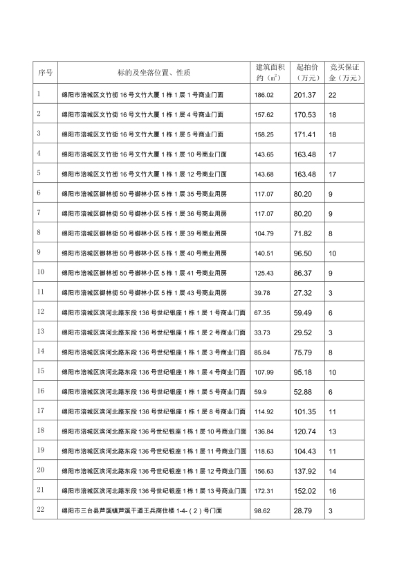 受委托,我公司將于2022年1月26日10:00起在綿陽市經(jīng)開區(qū)賈家店街66號(hào)(南鑫會(huì)議室)通過中國拍賣行業(yè)協(xié)會(huì)平臺(tái)(網(wǎng)址:https://paimai.caa123.org.cn)與現(xiàn)場(chǎng)同步競(jìng)價(jià)的方式對(duì)以下房產(chǎn)按現(xiàn)狀進(jìn)行公開拍賣,現(xiàn)將拍賣相關(guān)事宜公告如下: