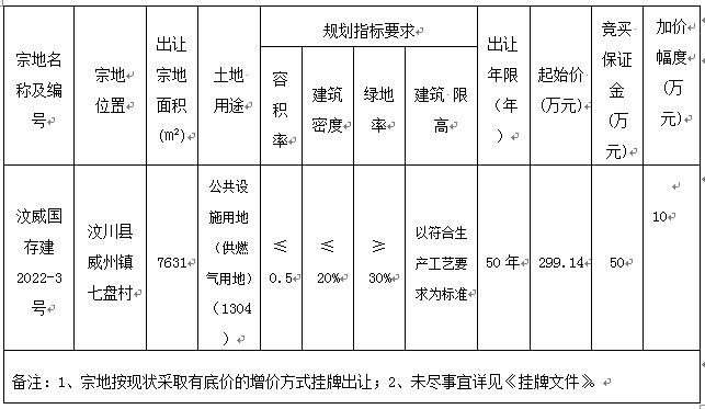 經汶川縣人民政府批準,受汶川縣自然資源局委托,對汶威國存建2022—3號地塊依法進行公開掛牌出讓?,F將有關事項公告如下: