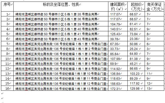受委托,我公司將于2023年6月16日15:00起在綿陽市經開區賈家店街66號(南鑫會議室)通過中國拍賣行業協會平臺(網址:https://paimai.caa123.org.cn)與現場同步競價的方式對以下房產按現狀進行公開拍賣,現將拍賣相關事宜公告如下: