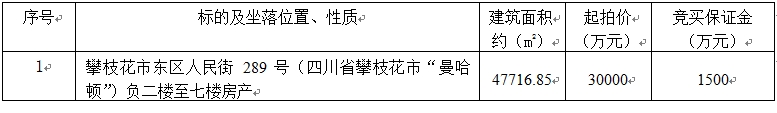 4.買(mǎi)受人從競(jìng)買(mǎi)成功并交清全部?jī)r(jià)款之日起享有房屋所有權(quán);從付清全部拍賣(mài)成交款項(xiàng)的次月起享有租金收益權(quán);本次拍賣(mài)標(biāo)的存在租賃,承租人為攀枝花百盛商業(yè)有限公司和橫店影視股份有限公司攀枝花電影城分公司。